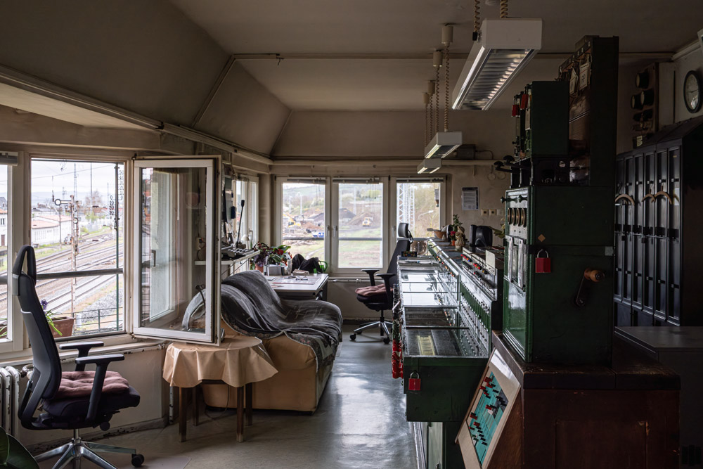 Das Gebäude sieht nicht nur nach Geschichte aus – die Technik wird in nicht all zu ferner Zukunft auch Geschichte sein, denn die Bahn arbeitet intensiv daran, analoge Stellwerke durch modernere Versionen zu ersetzen.