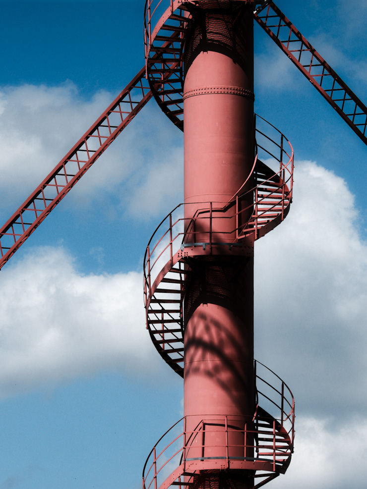 Die mittlere Röhre bietet einen Fahrstuhl. Für Notfälle (Fahrstuhl kaputt) gibt auch eine Treppe. Die würde ich nur ungern nehmen.