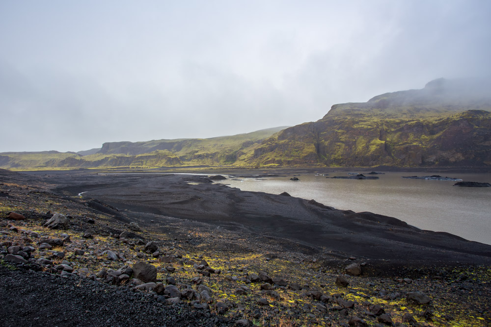 Meine ersten Aufnahmen sind bei recht „unerfreulichem“ Wetter entstanden. Düster würde es ganz gut treffen. Und nass. Einige Stunden später hätte es allerdings kaum besser sein können. Bis dahin hatte ich am Mýrdalsjökull allerdings schon viele Aufnahmen gemacht. Alle im Nieselregen-Look.