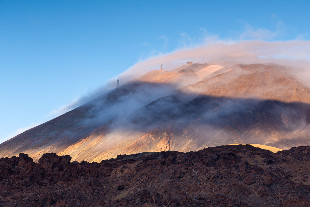 Nachmittags wird es hier oben zügig dunkel, da die Sonne von hier aus gesehen hinter den Roques de García untergeht. Dadurch liegt diese Landschaft früh im Schatten.