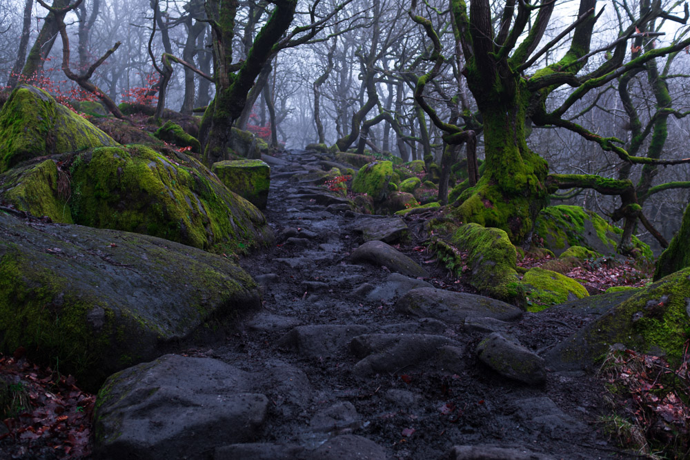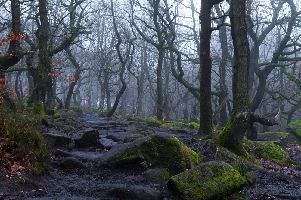 … liegt im Peak District. Recht nah an Hathersage (da wurde „Little Joe“ geboren. Fährt man hier durch die Landschaft, stellt sich zumindest bei mir immer wieder ein „Parkgefühl“ ein. Weil alles (vorsichtig) wie von Menschenhand gepflegt wirkt. Die Berge sind noch etwas runder als im Lake District. Die Täler zeigen sich weniger zerklüftet. Eins dieser Täler hört auf den Namen Padley Gorge. Es handelt sich um verwunschenes Terrain.