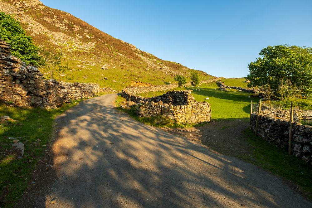 Losgegangen bin ich unterhalb des Pared-y-Cefn-Hir. Dort gibt es eine Farm. Ich habe die Bewohner gefragt, ob ich auf ihrem Grund parken darf.