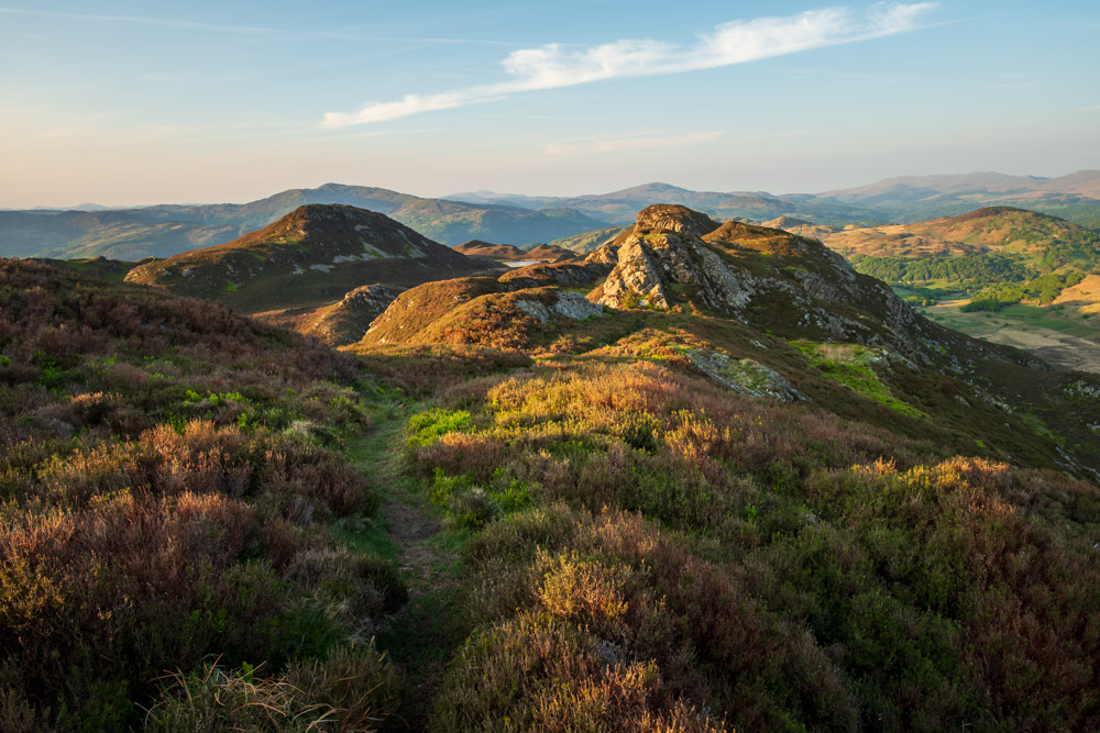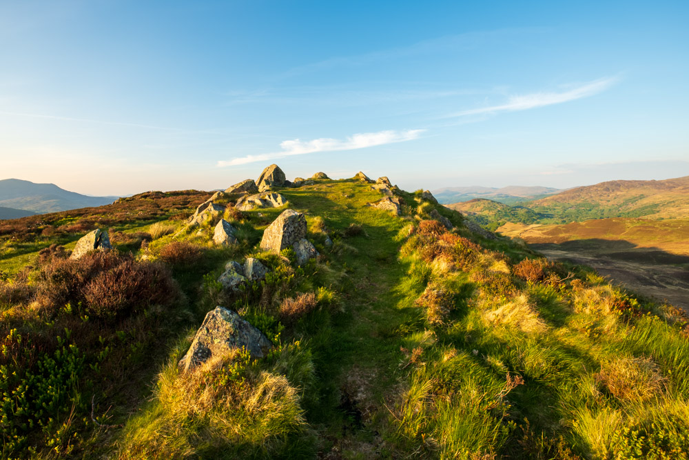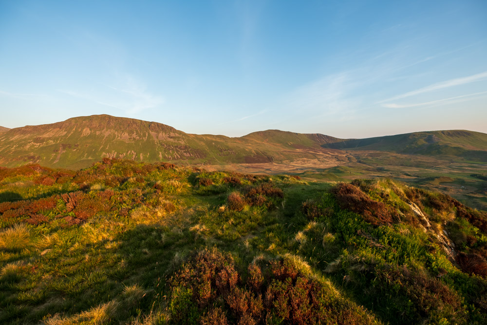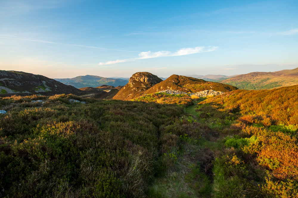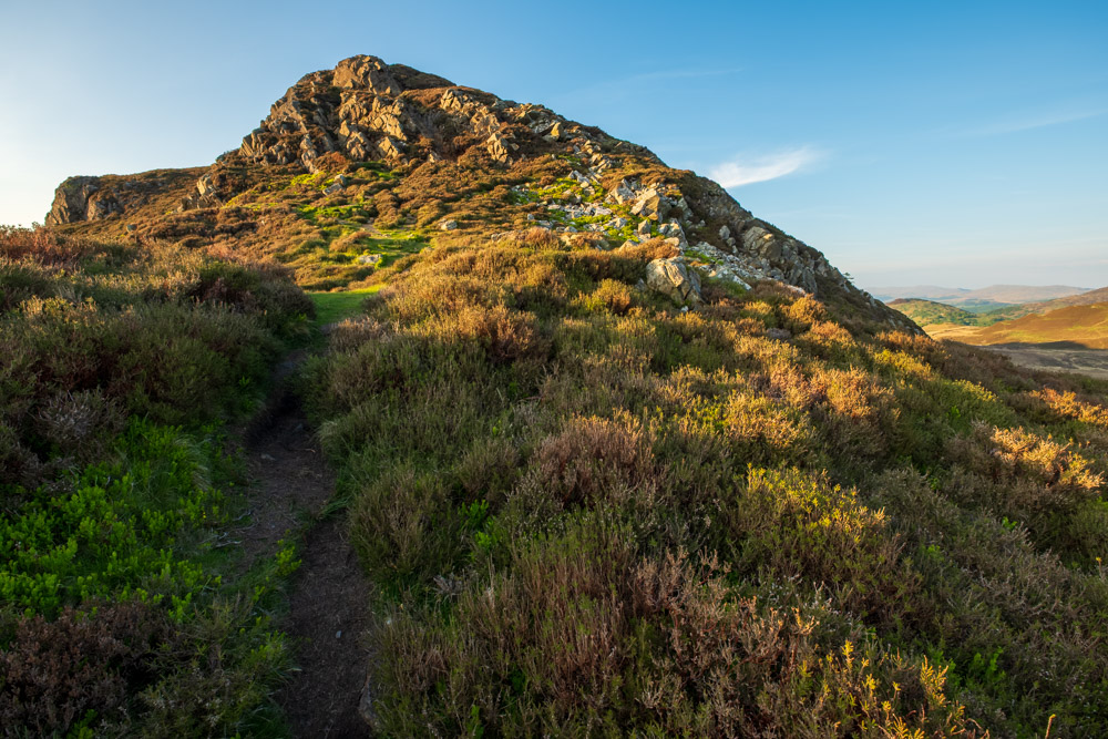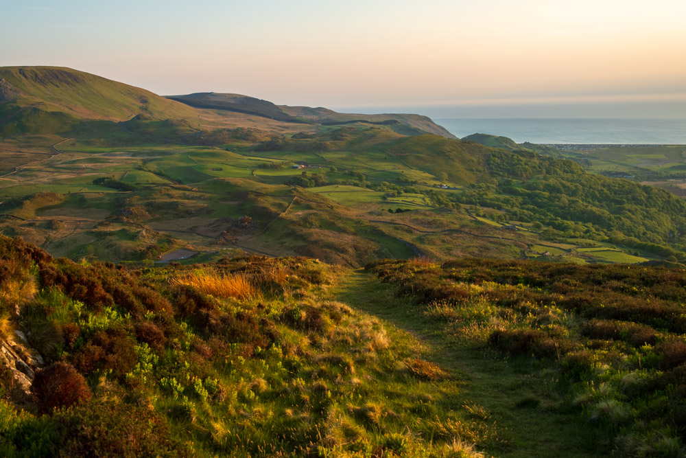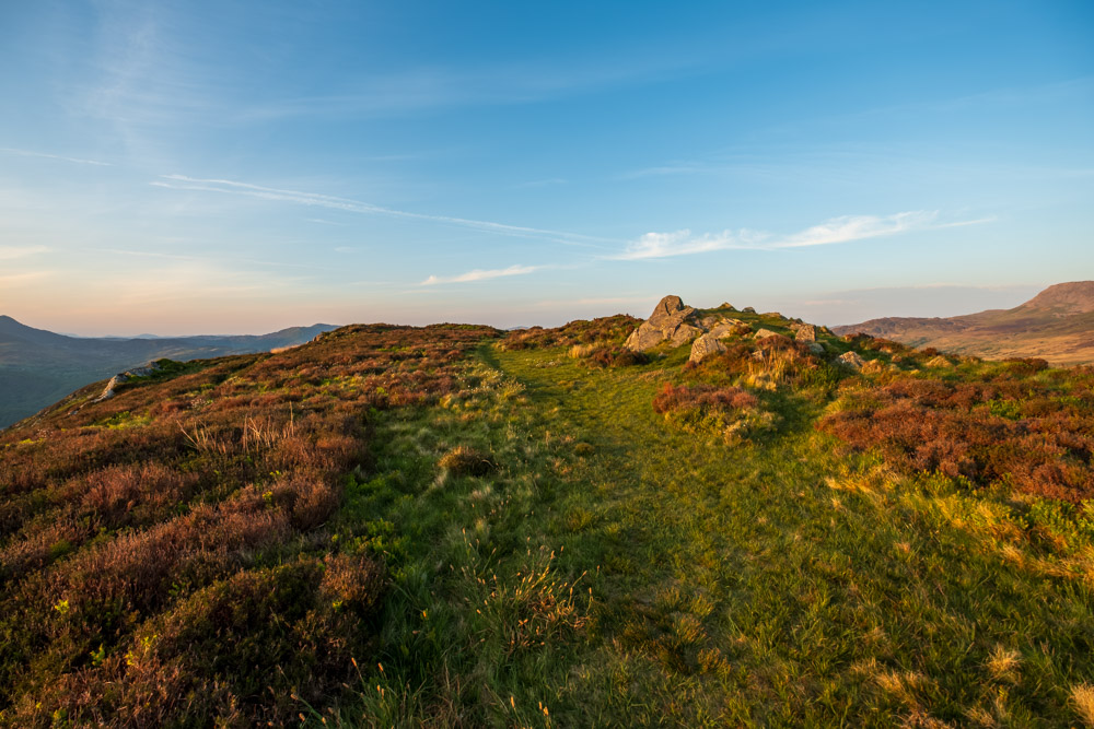 Das erste Bild ist wenige Schritte später entstanden. Da war es bereits 20:24 Uhr. Den Gipfel erreichte ich um 20:59 Uhr. Meine letzte Aufnahme vom Pared-y-Cefn-Hir ist auf dem Rückweg um 21:39 Uhr entstanden. Für mich war es eine grandios schöne Wanderung. Wohin man auch sah – die Aussicht war immer fantastisch.