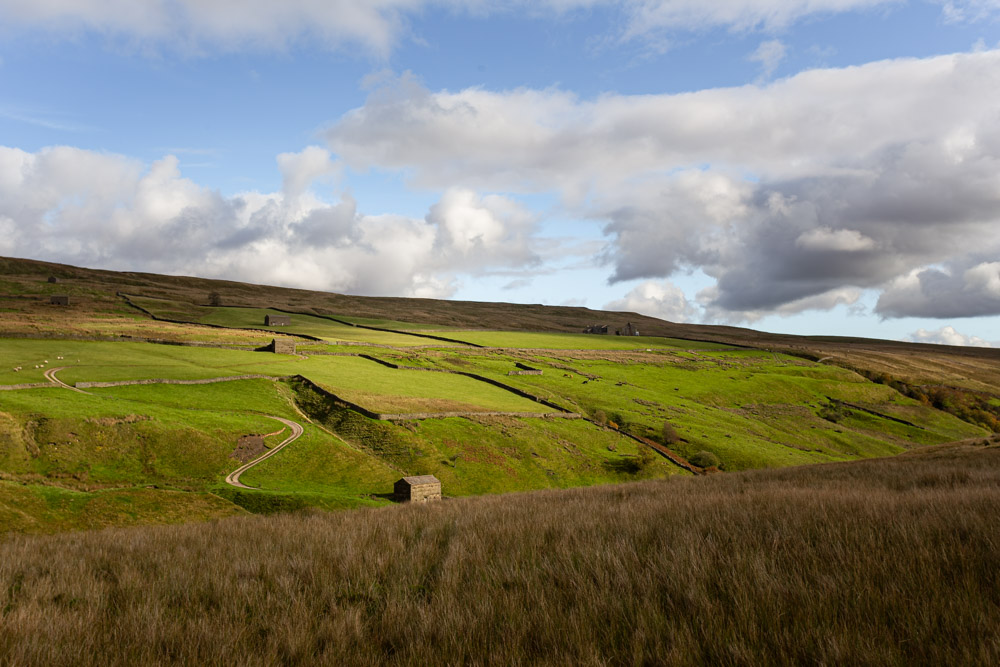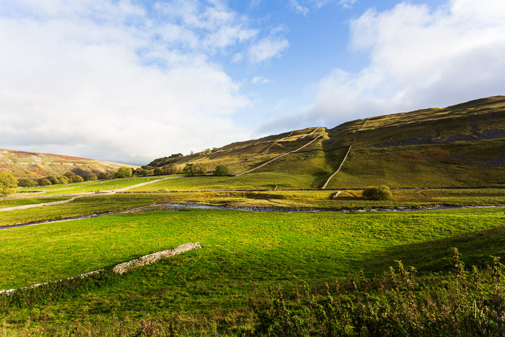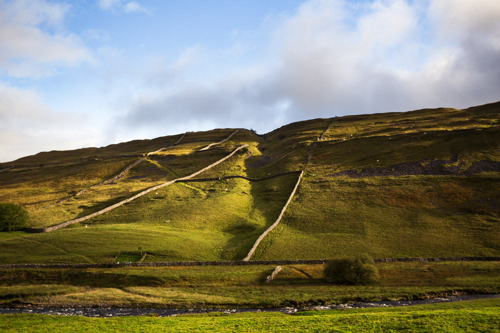 Die Yorkshire Dales sind der mittlerweile dritte Nationalpark, den wir uns in England ansehen. Auch hier stehen wieder die bekannten Mauern, die das Land nach einem mir unbekannten System parzellieren. Ohne diese Mauern wären es einfach nur hübsche Hügel. Die Mauern machen daraus ein landschaftliches Kunstwerk, dem ich rettungslos verfallen bin.